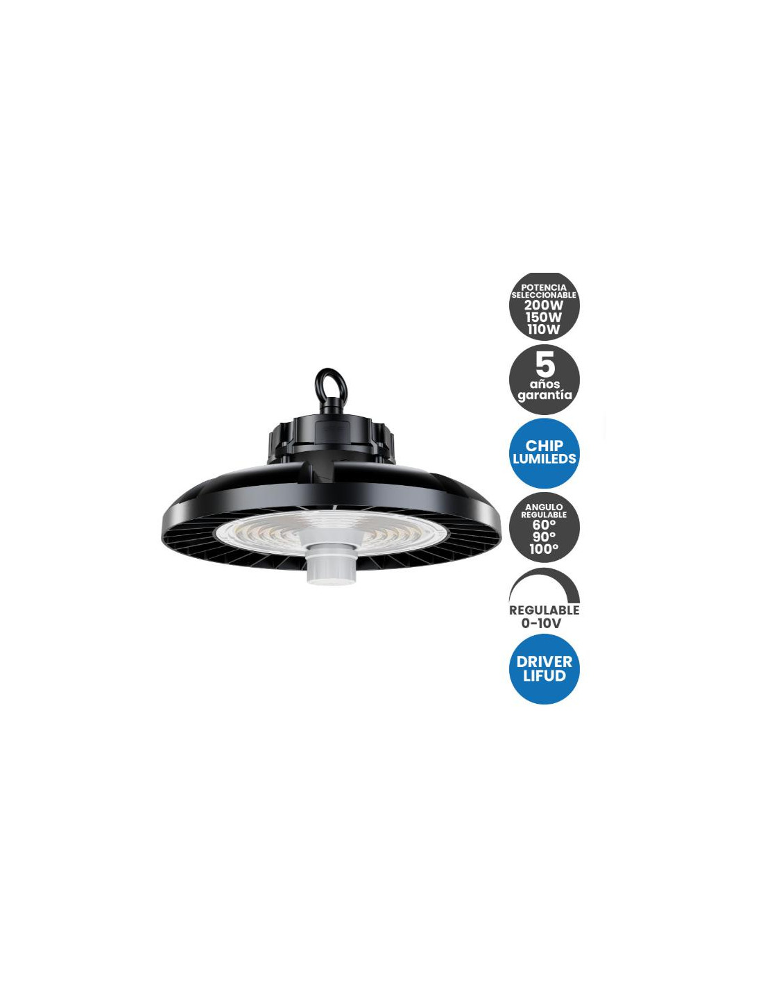 Campana Potencia y Angulo Seleccionable Regulable 0-10V Chip Lumileds Driver Lifud 5 años de garantiaPreparada para sensor de mo