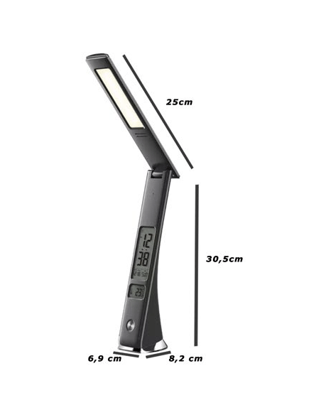 FLEXO REGULABLE EN INTENSIDAD DIFERENTES POTENCIAS DE ILUMINACION. BATERIA INTEGRADA DE 6 A 8 HORAS DE AUTONOMIA. CARGADOR PARA ENCHUFAR DIRECTO A LA RED ELECTRICA.RELOJ DIGITAL. TEMPERATURA. ROTULA PARA CAMBIAR EL ANGULO DE ILUMINACION