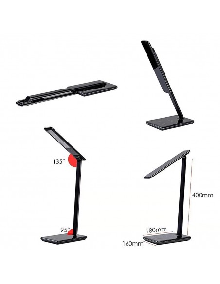 FLEXO REGULABLE EN INTENSIDAD DIFERENTES POTENCIAS DE ILUMINACION. BATERIA INTEGRADA DE 6 A 8 HORAS DE AUTONOMIA. CARGADOR PARA ENCHUFAR DIRECTO A LA RED ELECTRICA. CARGADOR INALAMBRICO. PUERTO USB. CCT LUZ CALIDA , NEUTRA Y FRIA
