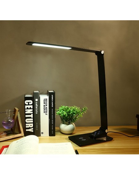 FLEXO 7W NEGRO HORA Y TEMPERATURA CCT. ROTULA PARA REGULAR EN ALTURA, PUERTO USB