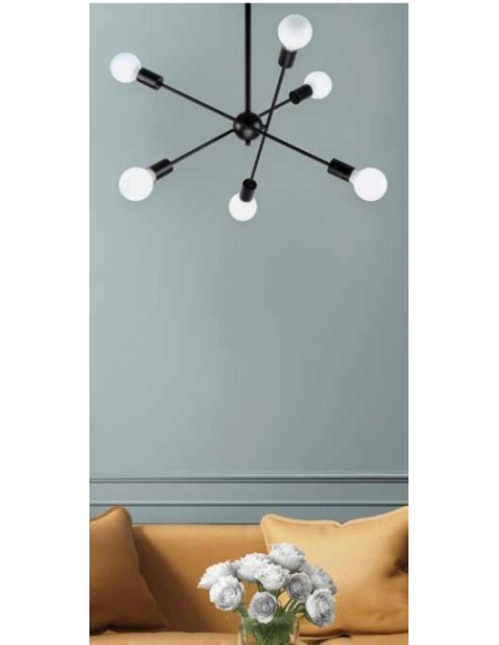 LAMPARA 6 LUCES 6XE27 NEGRA