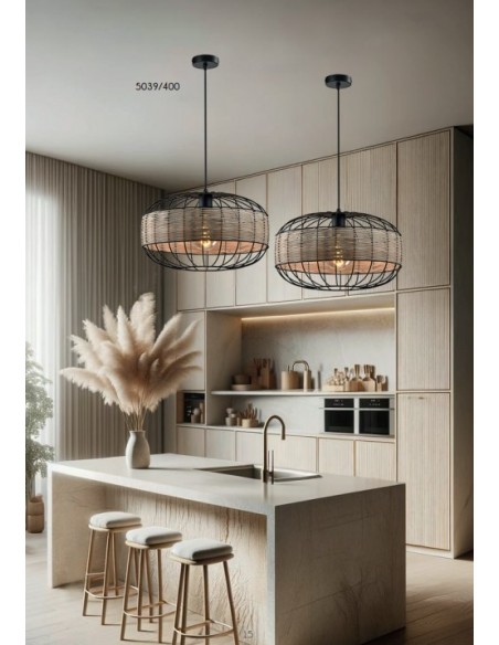 COLGANTE E27 NEGRO RUSTICO MADERA BAMBU 40CM