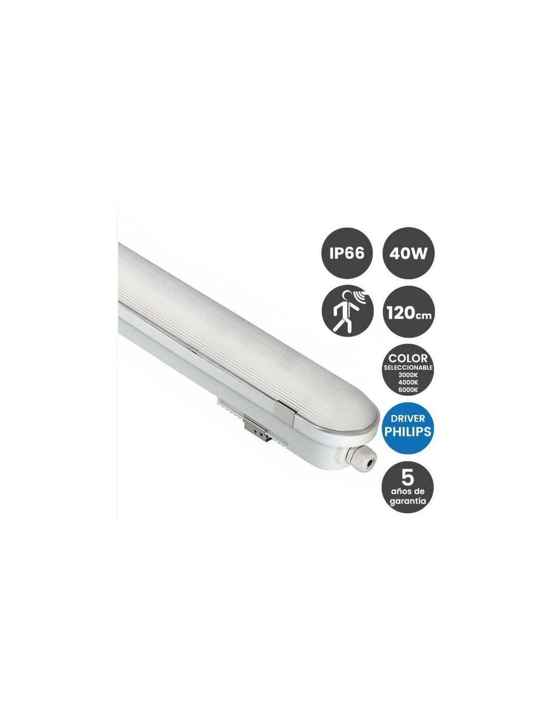 PANTALLA ESTANCA LED 40W CON SENSOR RADAR PHILIPS DRIVER XITANIUM COREPLUS EVO CCT 120cm IP66