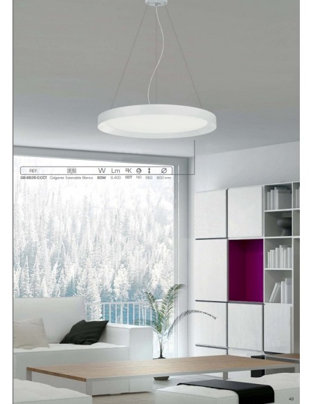 PLAFON COLGANTE 80W CCT REDONDO BLANCO 80CM