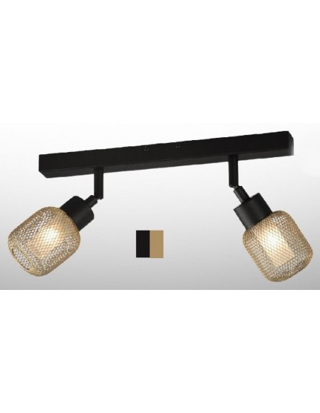 REGLETA 2 LUCES NEGRA ORO G9 REJILLA ACRILICO OPAL