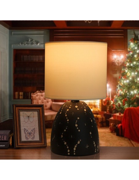SOBREMESA E14 CERAMICA NEGRA DECORADA CON PANTALLA