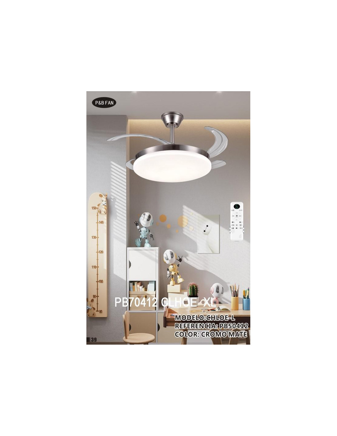Nuevo VENTILADOR PB CHLOE L VENTILADOR WIFI 72W REGULABLE RECTRACTIL CCT CROMO MATE CON MEMORIA 50CM PB50412 Añadir al carro