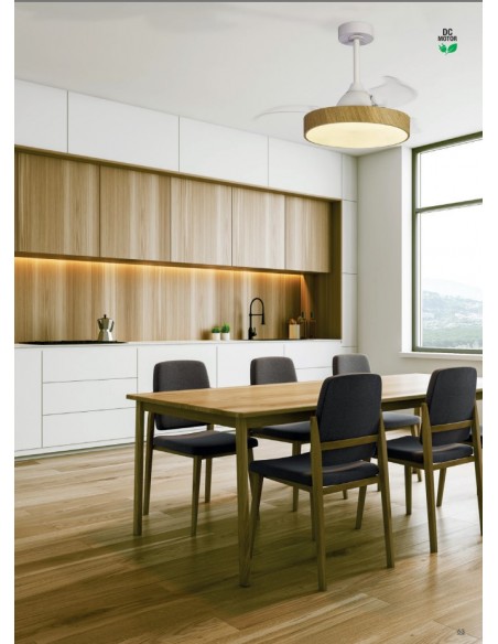 ALASKA MINI DC VENTILADOR RETRACTIL 45W MADERA BLANCO MOTOR 25W