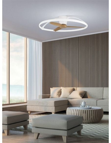 NEPAL * PLAFON VENTILADOR BLANCO/HAYA LED CON MANDO
